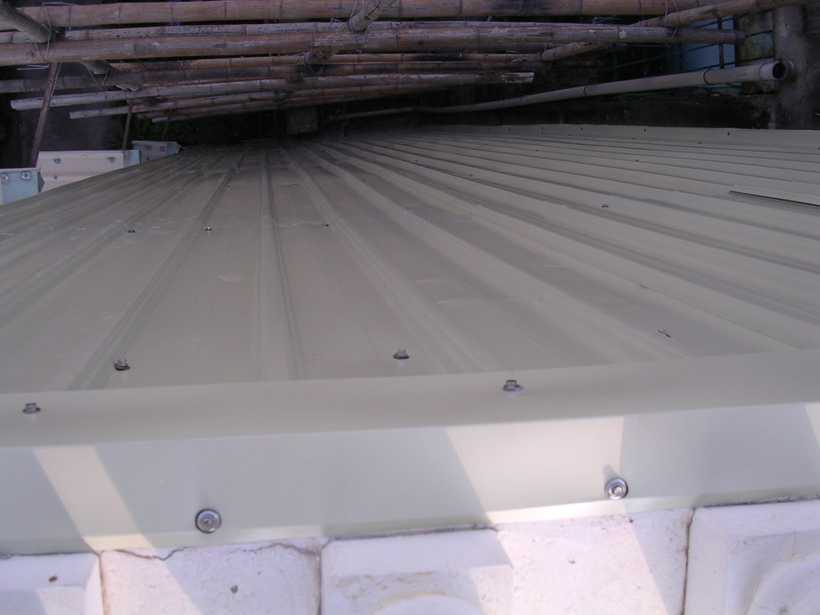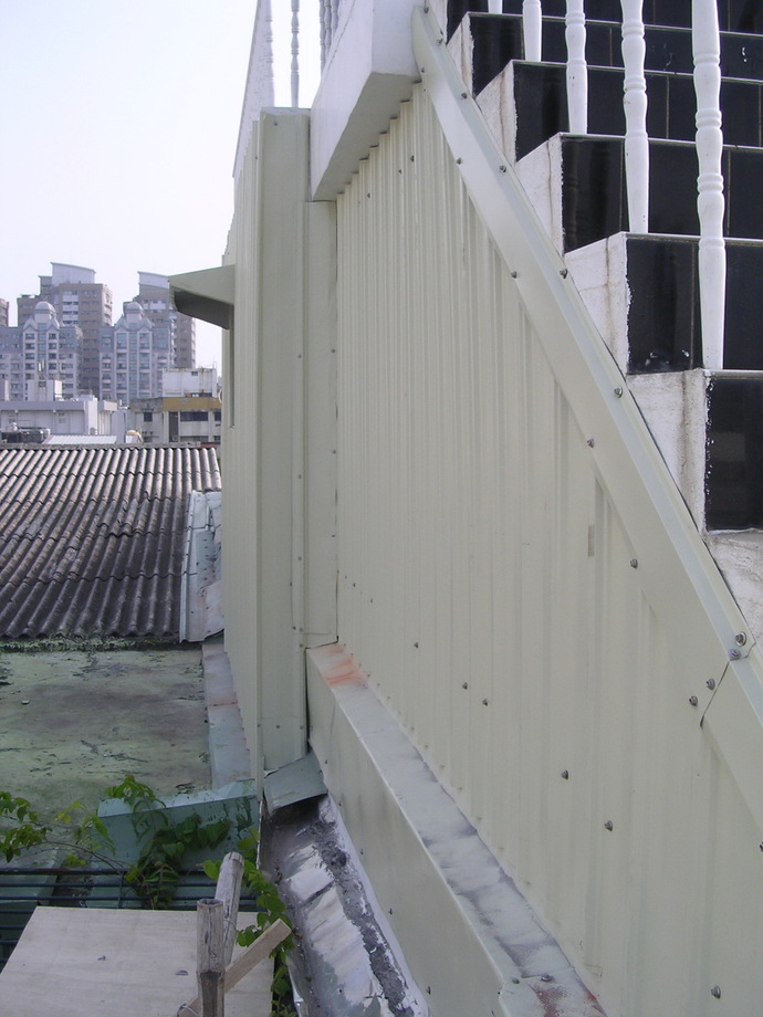 使用傳統烤漆浪板作為屋面或遮棚材料,依現場結構條件規劃支撐與搭接方向,處理收邊與螺絲固定位置,兼顧遮蔭與排水功能,讓整體結構更符合日常使用需求。使結構在日曬雨淋下仍維持良好狀態。